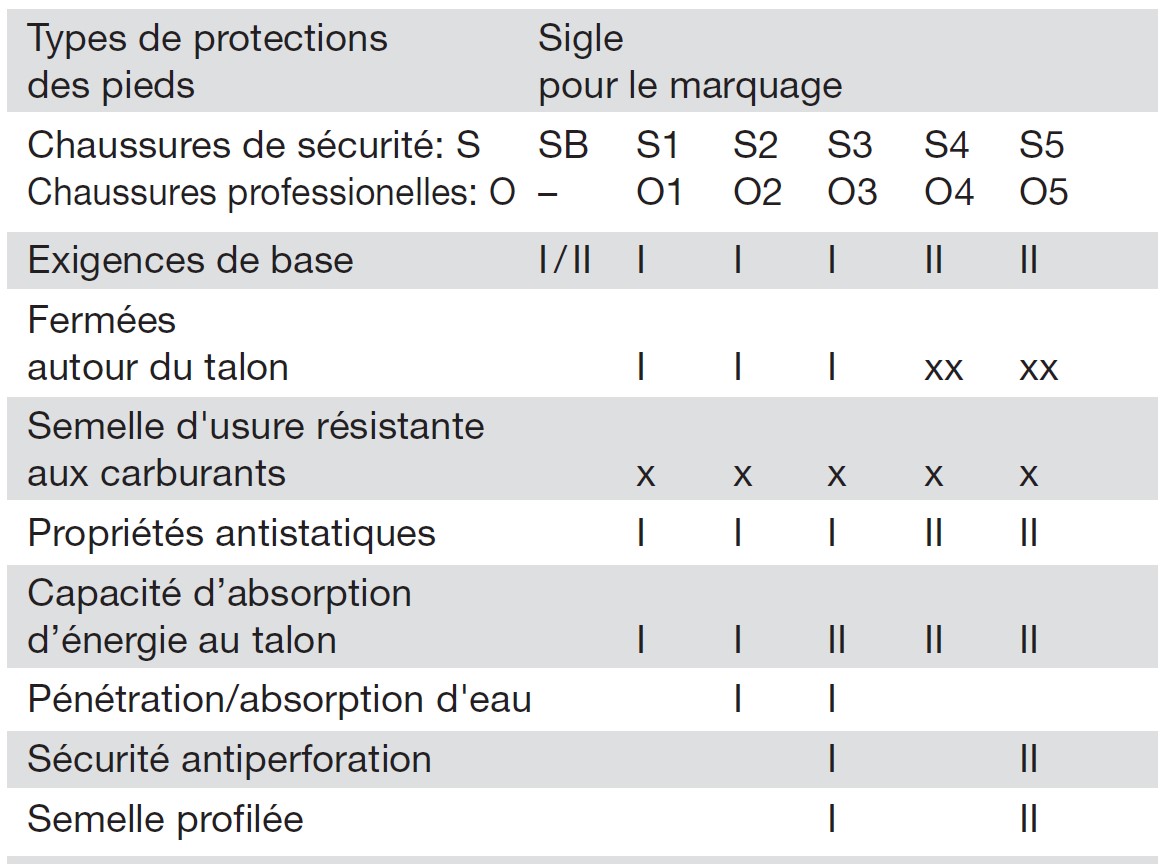 • De manière générale, la protection des pieds doit correspondre au type de classification II.