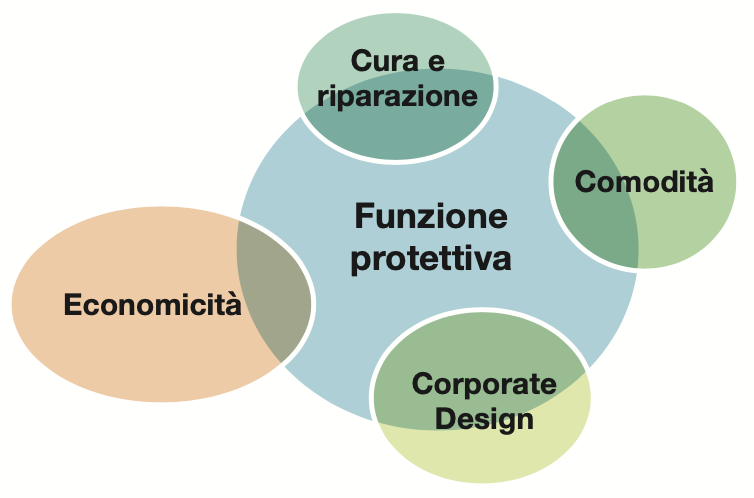 In base al rispettivo scopo di protezione il materiale e gli accessori soddisfano le proprietà di protezione richieste grazie alla composizione delle loro fibre e/o a successivi trattamenti del tessuto.